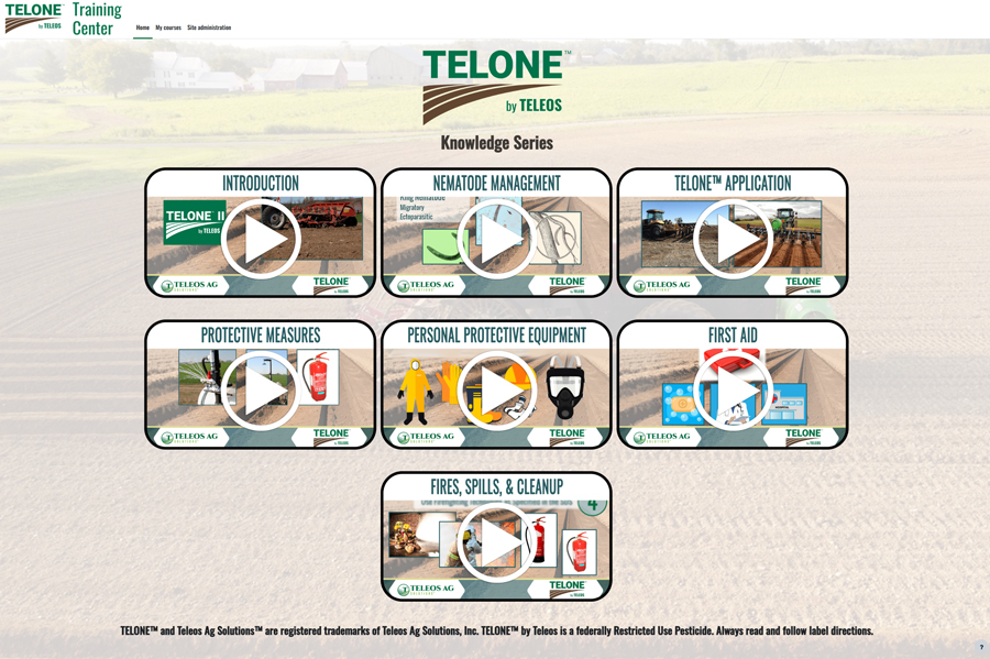 Teleos has created a series of seven TELONE™ training modules*, covering everything from TELONE™ application, PPE, safety, nematode science, and more. Upon successful completion of the program, you will receive a certificate of completion and certification hours.